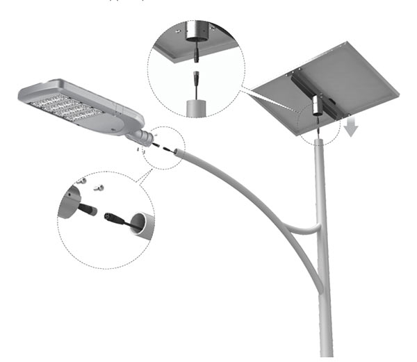 7.For the PLUS series solar street lights, a cantilever pole is recommended. The diameter of the pole at the top where the solar panel bracket is installed should not exceed 80 mm, and the cantilever should not exceed 60 mm.