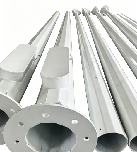 Tapered poles are aesthetic with low wind resistance; cylindrical poles are more cost-effective; polygonal poles (usually 8/12/16 sides) offer the highest structural strength, ideal for high mast lighting.